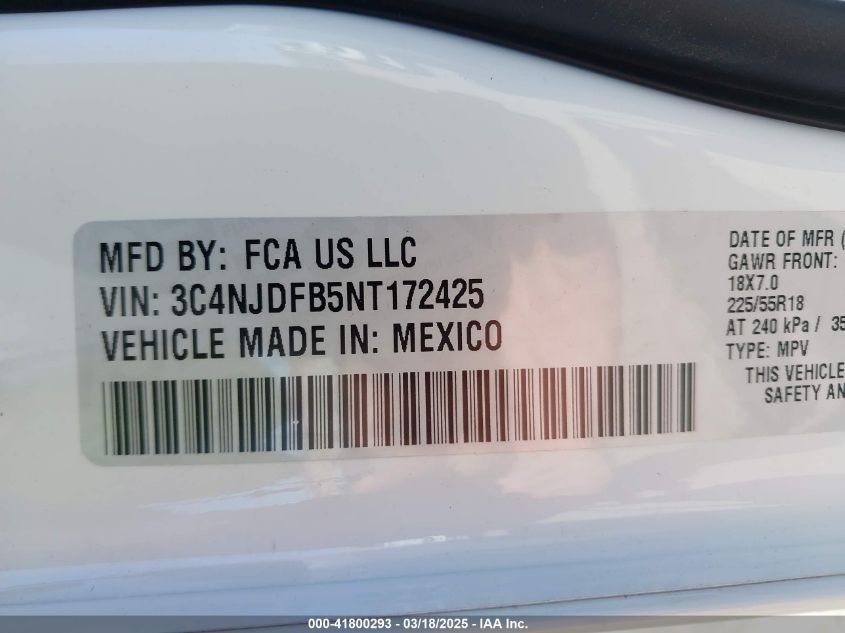 Color WhiteCylinders 4Drive Full driveVIN 3C4NJDFB5NT******State Run & Drive VerifiedDamage Front or back AutoRIA