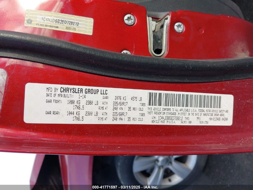 Color RedCylinders 4Drive Full driveVIN 1C4NJDBB3ED******State Run & Drive VerifiedDamage Front or back AutoRIA