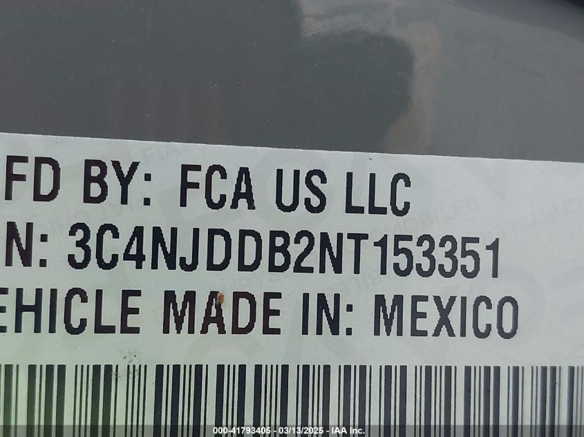 Color GrayCylinders 4Drive Full driveVIN 3C4NJDDB2NT******State Run & Drive VerifiedDamage Insignificant AutoRIA