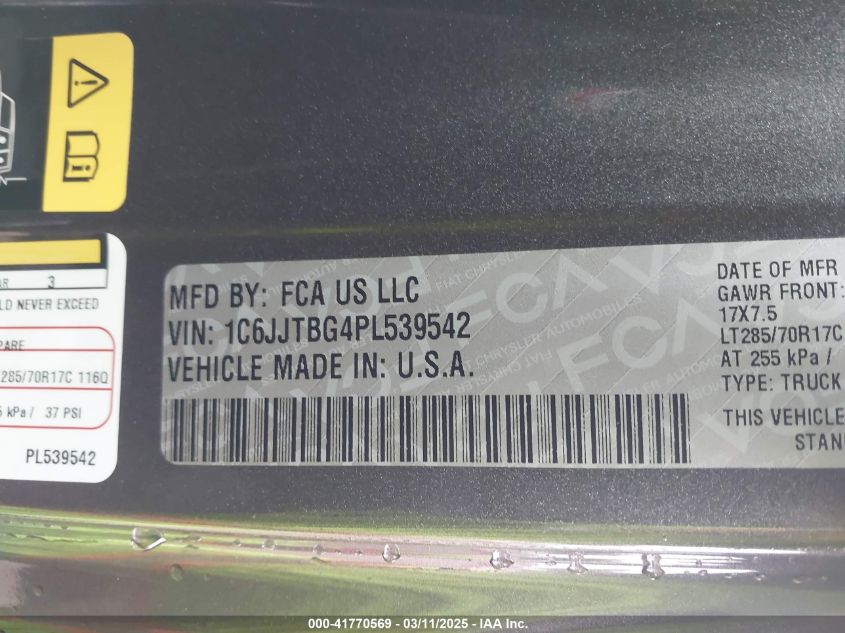 2023 JEEP GLADIATOR 2023 Gasoline, 3.6, Full drive, VIN - 1C6JJTBG4PL****** from the USA