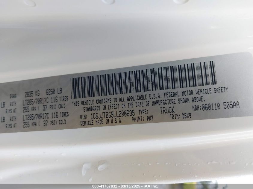 2020 JEEP GLADIATOR 2020 Gasoline, 3.6, Full drive, VIN - 1C6JJTBG9LL****** from the USA