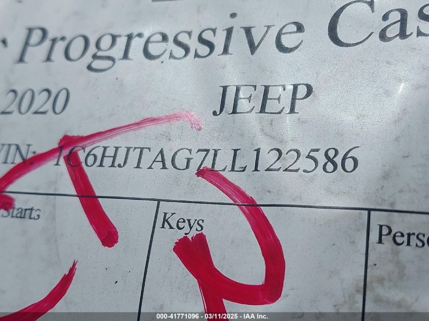 2020 JEEP GLADIATOR 2020 Gasoline, 3.6, Full drive, VIN - 1C6HJTAG7LL****** from the USA