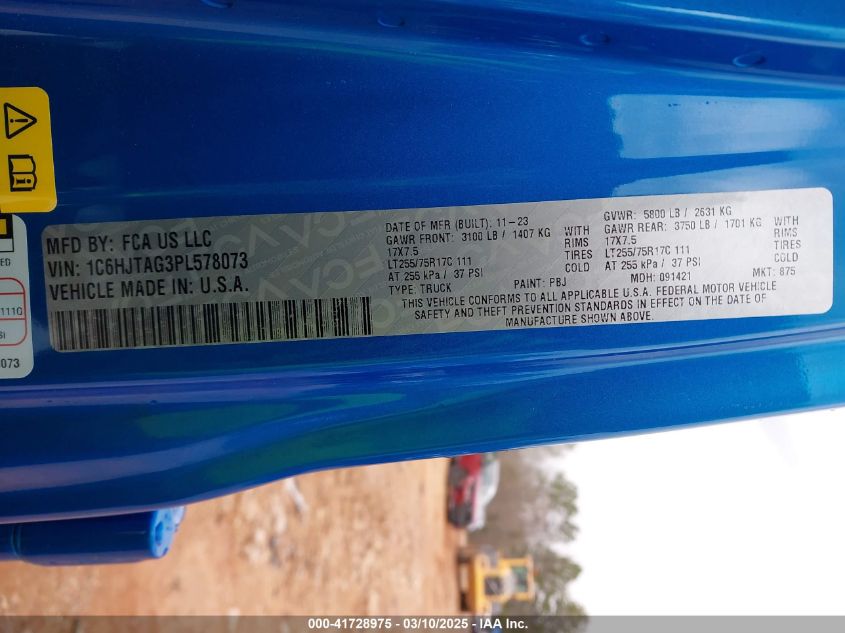 2023 JEEP GLADIATOR 2023 Gasoline, 3.6, Full drive, VIN - 1C6HJTAG3PL****** from the USA