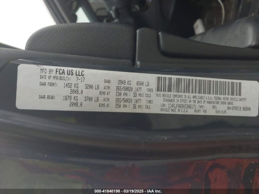 2017 JEEP GRAND CHEROKEE 2017 Gasoline, 3.6, Full drive, VIN - 1C4RJFAG9HC****** from the USA