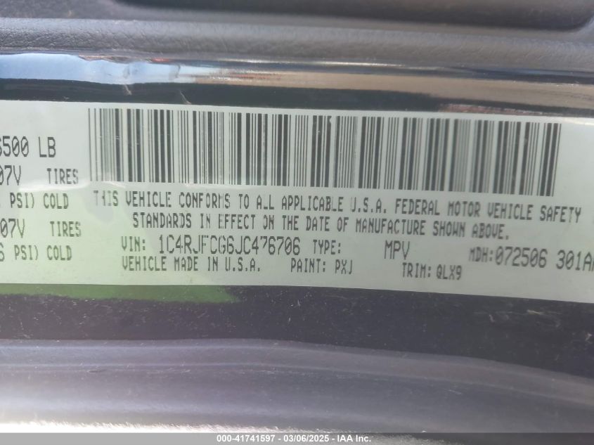 Color BlackCylinders 6Drive Full driveVIN 1C4RJFCG6JC******State Run & Drive VerifiedDamage All over the car AutoRIA