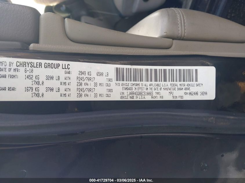 2011 JEEP GRAND CHEROKEE 2011 Gasoline, 3.6, Full drive, VIN - 1J4RR4GG8BC****** from the USA