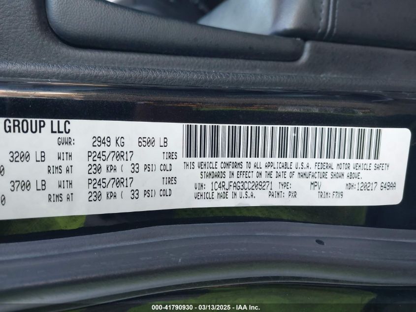 Color BlackCylinders 6Drive Full driveVIN 1C4RJFAG3CC******State Run & Drive VerifiedDamage Front or backAuction date 2025-03-20 AutoRIA