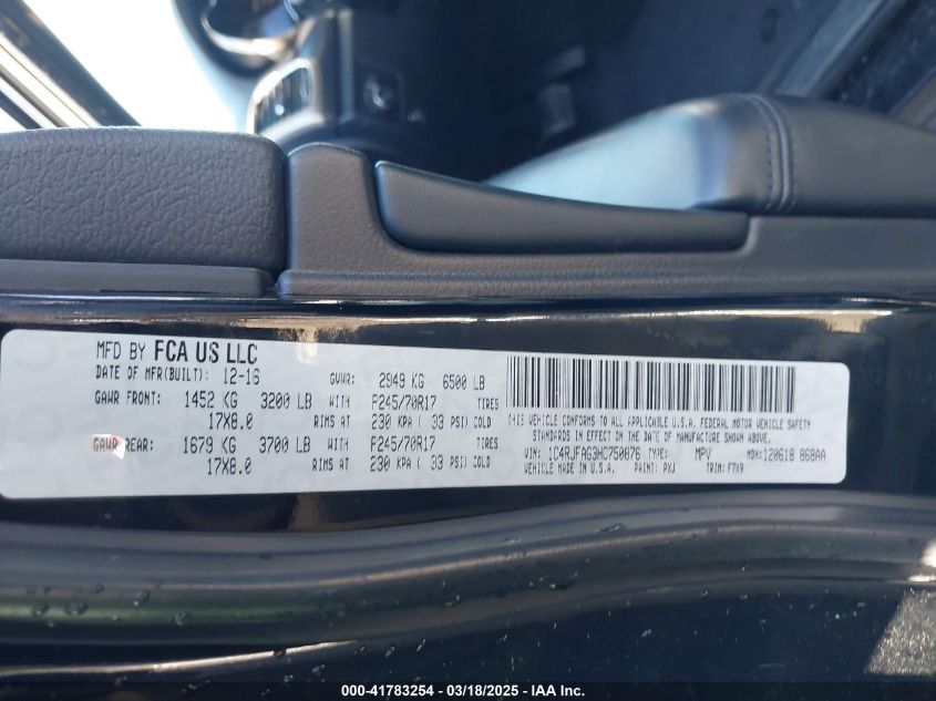 Color BlackCylinders 6Drive Full driveVIN 1C4RJFAG3HC******State Run & Drive VerifiedDamage Vandalism AutoRIA