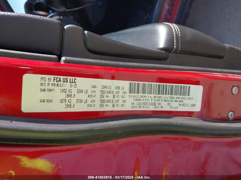 Color RedCylinders 6Drive Full driveVIN 1C4RJFBG5FC******State Run & Drive VerifiedDamage Front and back AutoRIA