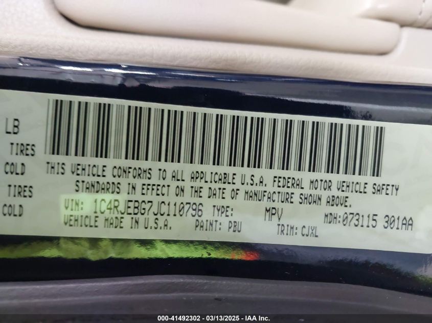 Color BlueCylinders 6Drive UnknownVIN 1C4RJEBG7JC******State Run & Drive VerifiedDamage Front or backAuction date 2025-03-24 AutoRIA