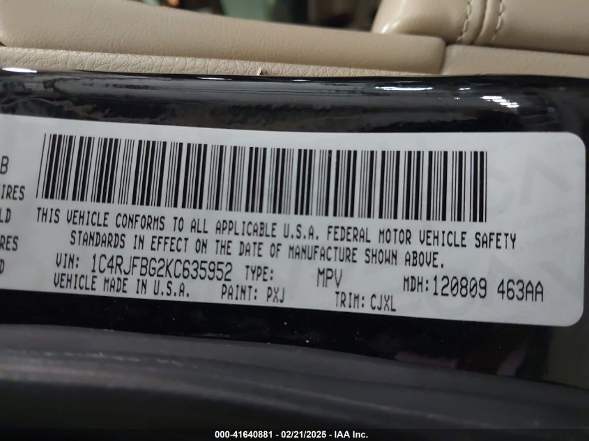 2019 JEEP GRAND CHEROKEE 2019 Gasoline, 3.6, Full drive, VIN - 1C4RJFBG2KC****** from the USA