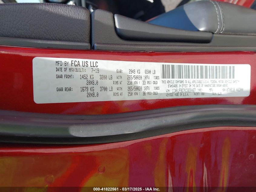 Color BurgundyCylinders 6Drive Full driveVIN 1C4RJFBG7KC******State Run & Drive VerifiedDamage Front or backAuction date 2025-03-20 AutoRIA