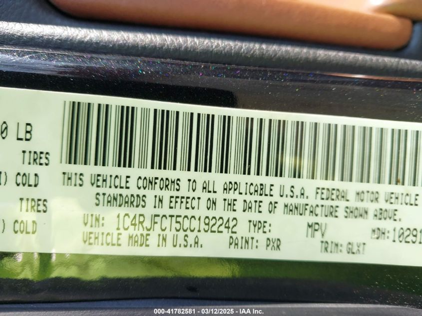Color BlackCylinders 8Drive Full driveVIN 1C4RJFCT5CC******State Run & Drive VerifiedDamage Front leftAuction date 2025-03-20 AutoRIA