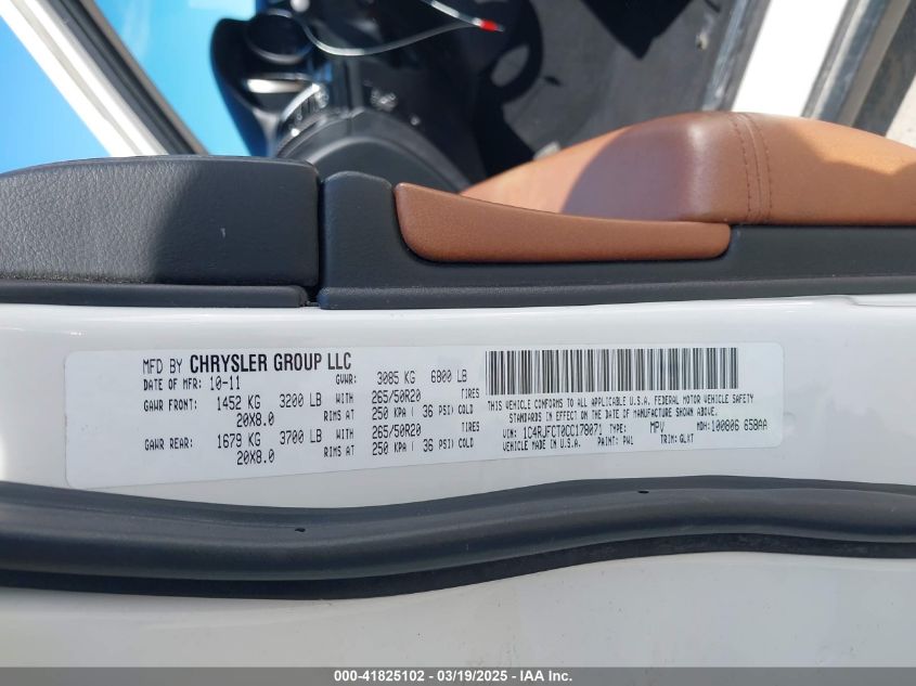 2012 JEEP GRAND CHEROKEE 2012 Gasoline, 5.7, Full drive, VIN - 1C4RJFCT0CC****** from the USA