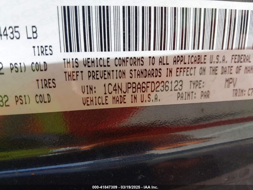 Color BlueCylinders 4Drive Front wheel driveVIN 1C4NJPBA6FD******State Run & Drive VerifiedDamage Insignificant AutoRIA