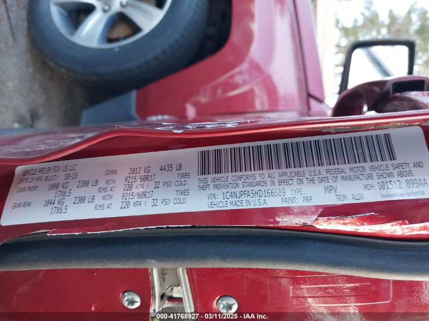 Color RedCylinders 4Drive Front wheel driveVIN 1C4NJPFA5HD******State Run & Drive VerifiedDamage Back