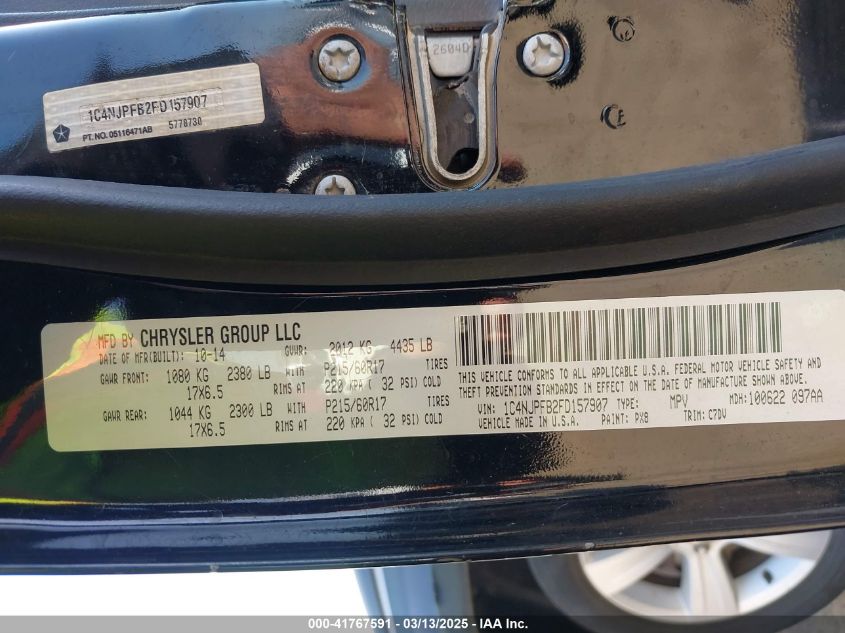 Color BlackCylinders 4Drive Front wheel driveVIN 1C4NJPFB2FD******State Run & Drive VerifiedDamage Front or backAuction date 2025-03-26 AutoRIA
