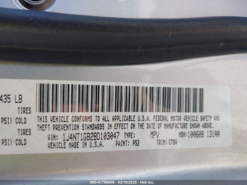 Color SilverCylinders 4Drive Front wheel driveVIN 1J4NT1GB2BD******State Run & Drive VerifiedDamage BackAuction date 2025-03-20 AutoRIA