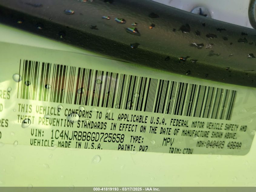 Color WhiteCylinders 4Drive Full driveVIN 1C4NJRBB6GD******State Run & Drive VerifiedDamage Front or back AutoRIA