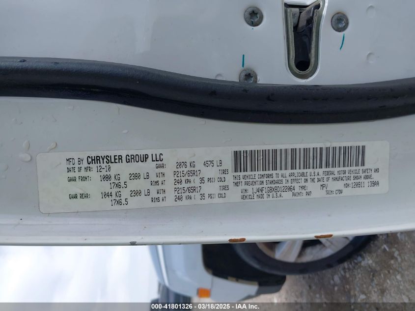 Color WhiteCylinders 4Drive Full driveVIN 1J4NF1GBXBD******State Run & Drive VerifiedDamage Back AutoRIA