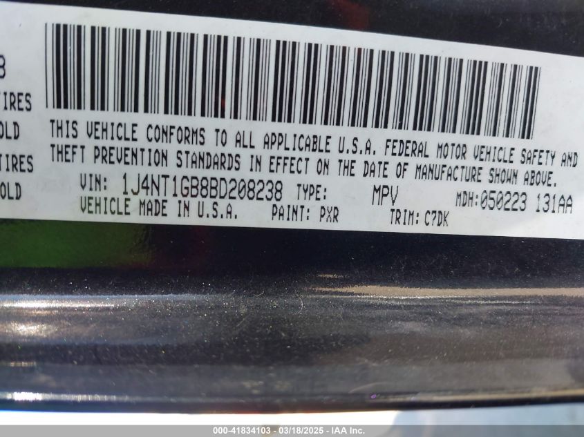 Color BlackCylinders 4Drive Front wheel driveVIN 1J4NT1GB8BD******State Run & Drive VerifiedDamage Front or back AutoRIA