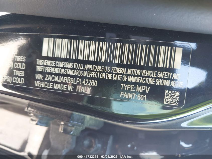 Color BlackCylinders 4Drive Front wheel driveVIN ZACNJABB9LP******State Run & Drive VerifiedDamage Front or backAuction date 2025-03-21 AutoRIA
