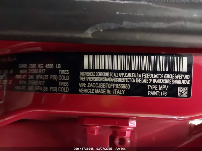 Color RedCylinders 4Drive Full driveVIN ZACCJBBT0FP******State Run & Drive VerifiedDamage Front or back AutoRIA