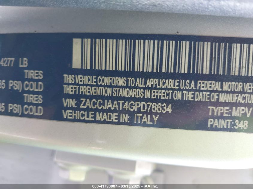 Color SilverCylinders 4Drive Front wheel driveVIN ZACCJAAT4GP******State Run & Drive VerifiedDamage Right side AutoRIA