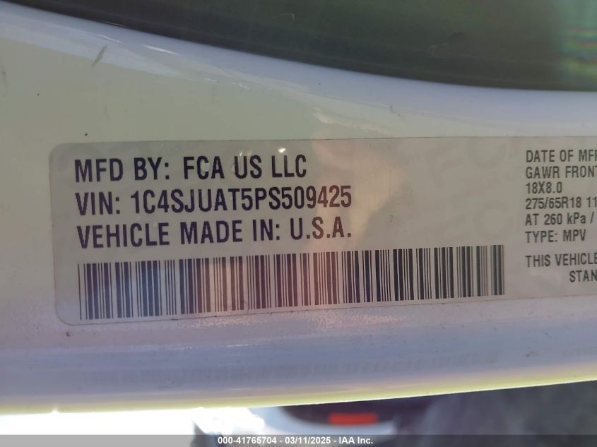 Color WhiteCylinders 8Drive UnknownVIN 1C4SJUAT5PS******State Run & Drive VerifiedDamage Front and back AutoRIA