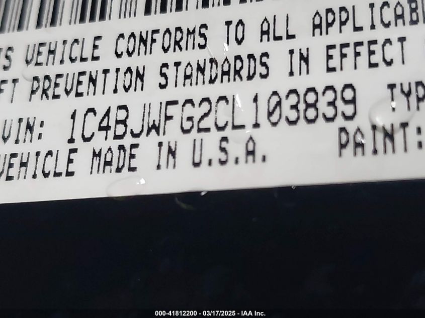 Color BlackCylinders 6Drive Full driveVIN 1C4BJWFG2CL******State Run & Drive VerifiedDamage Front left AutoRIA
