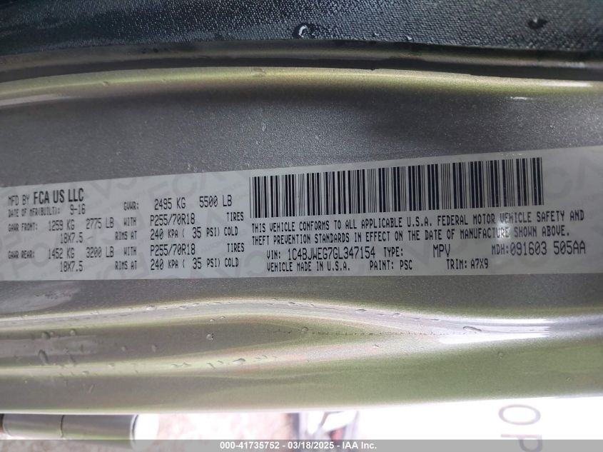 Color SilverCylinders 6Drive Full driveVIN 1C4BJWEG7GL******State Run & Drive VerifiedDamage Front left AutoRIA