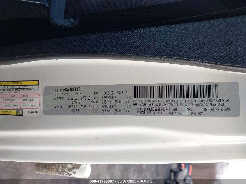 Color WhiteCylinders 6Drive Full driveVIN 1C4BJWDG6GL******State Run & Drive VerifiedDamage Front left AutoRIA