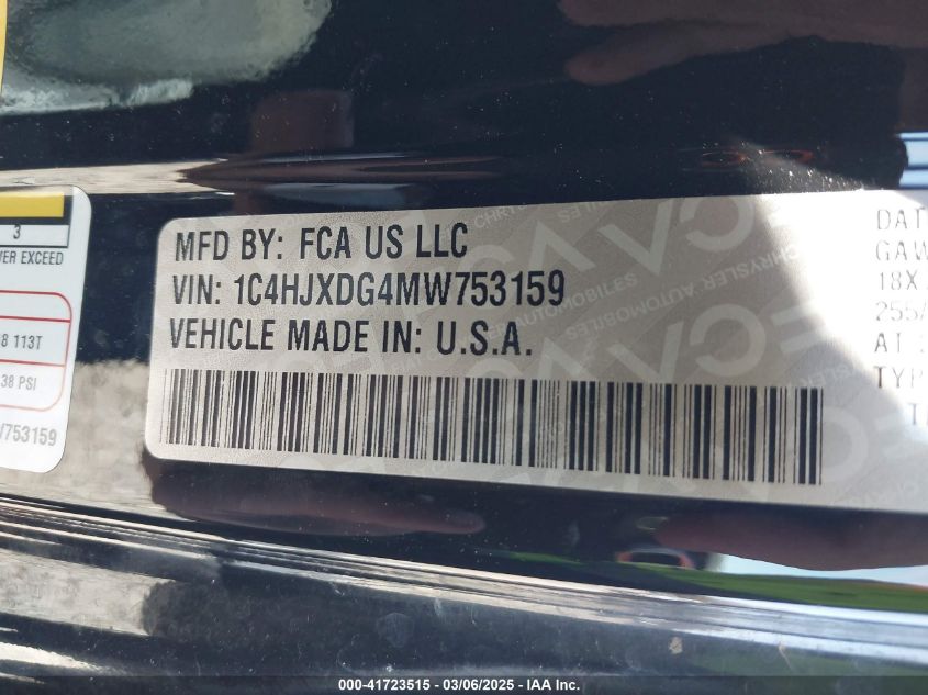 Color BlackCylinders 6Drive Full driveVIN 1C4HJXDG4MW******State Run & Drive VerifiedDamage Rear left AutoRIA