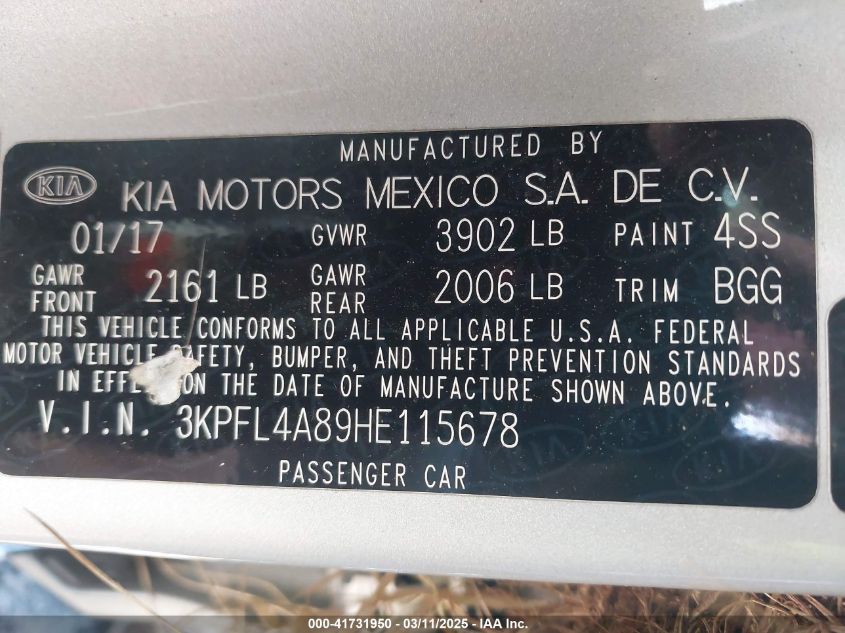 2017 KIA FORTE 2017 Gasoline, 2.0, Front wheel drive, VIN - 3KPFL4A89HE****** from the USA