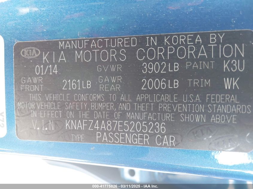 Color BlueCylinders 4Drive Front wheel driveVIN KNAFZ4A87E5******State Run & Drive VerifiedDamage Front or back AutoRIA