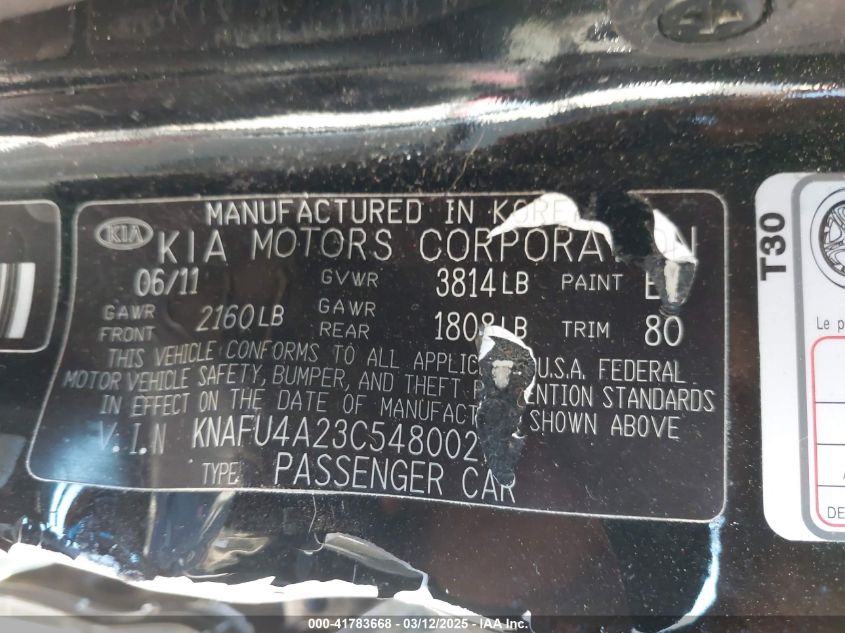 Color BlackCylinders 4Drive Front wheel driveVIN KNAFU4A23C5******State Run & Drive VerifiedDamage Left side AutoRIA