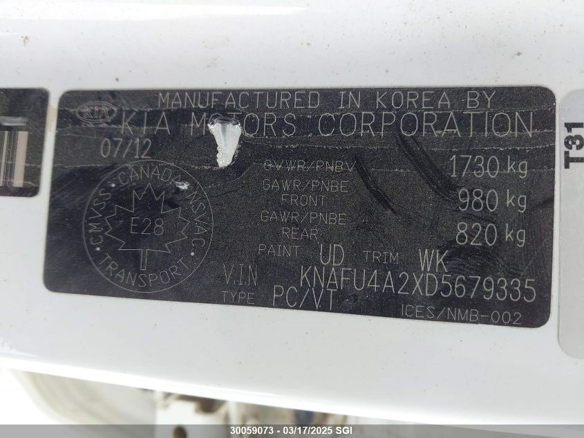 Color WhiteCylinders 4Drive UnknownVIN KNAFU4A2XD5******State Run & Drive VerifiedDamage Right sideAuction date 2025-03-25 AutoRIA