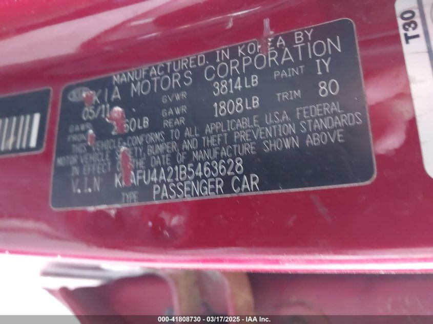 2011 KIA FORTE 2011 Gasoline, 2.0, Front wheel drive, VIN - KNAFU4A21B5****** from the USA