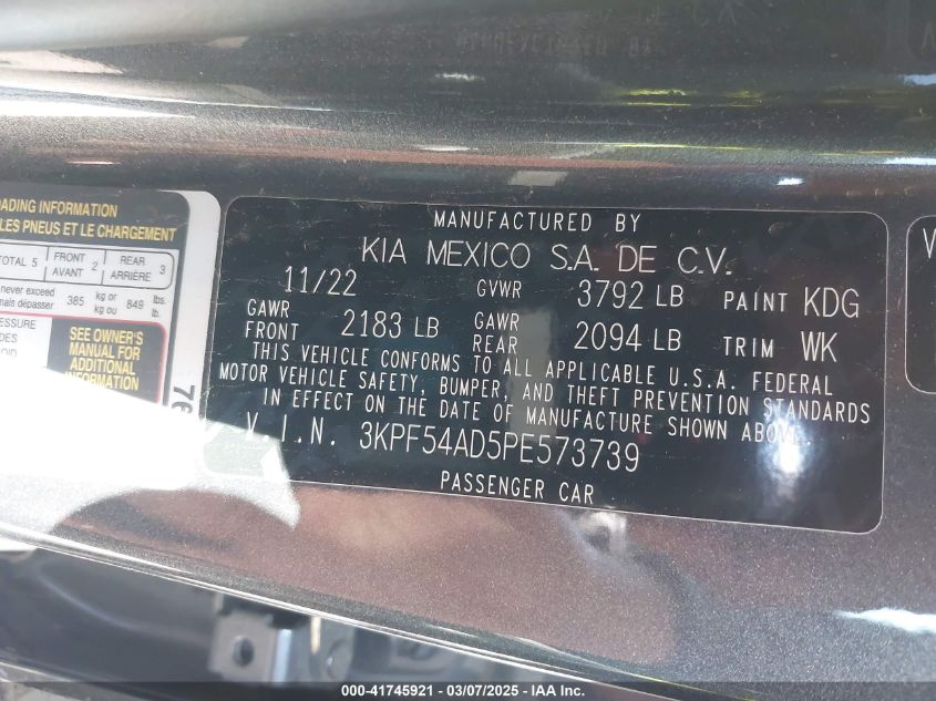 2023 KIA FORTE 2023 Gasoline, 2.0, Front wheel drive, VIN - 3KPF54AD5PE****** from the USA