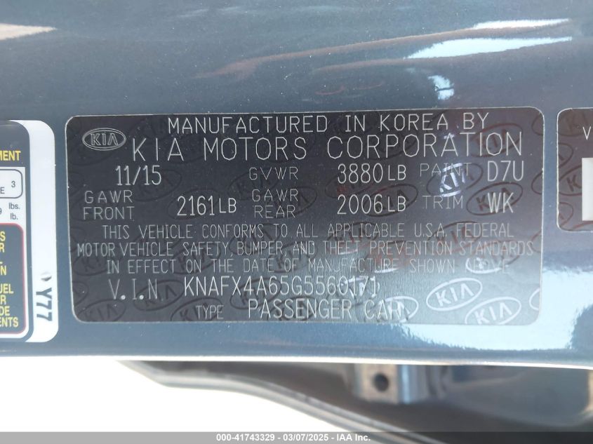 2016 KIA FORTE 2016 Gasoline, 1.8, Front wheel drive, VIN - KNAFX4A65G5****** from the USA