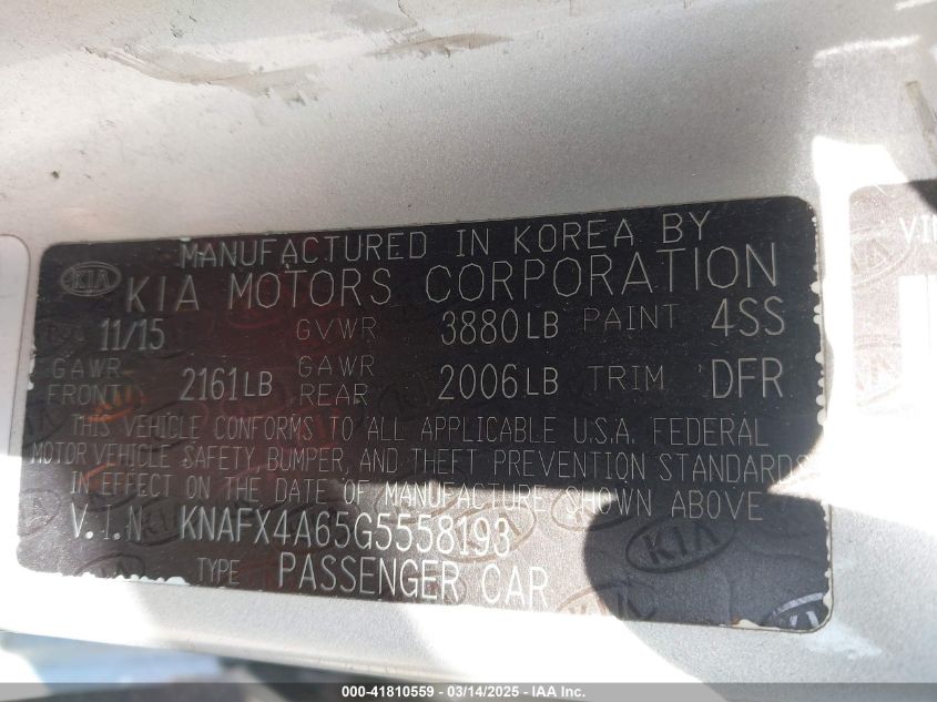 2016 KIA FORTE 2016 Gasoline, 1.8, Front wheel drive, VIN - KNAFX4A65G5****** from the USA