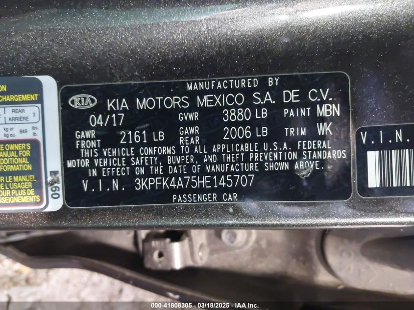 2017 KIA FORTE 2017 Gasoline, 2.0, Front wheel drive, VIN - 3KPFK4A75HE****** from the USA
