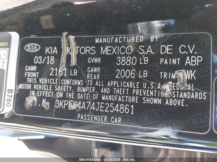 2018 KIA FORTE 2018 Gasoline, 2.0, Front wheel drive, VIN - 3KPFK4A74JE****** from the USA