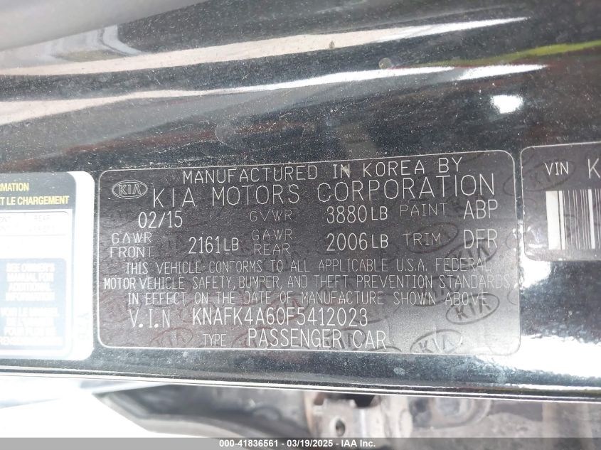 2015 KIA FORTE 2015 Gasoline, 1.8, Front wheel drive, VIN - KNAFK4A60F5****** from the USA