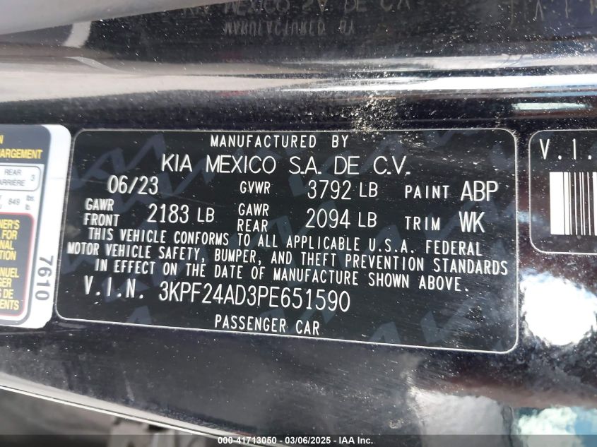 2023 KIA FORTE 2023 Gasoline, 2.0, Front wheel drive, VIN - 3KPF24AD3PE****** from the USA