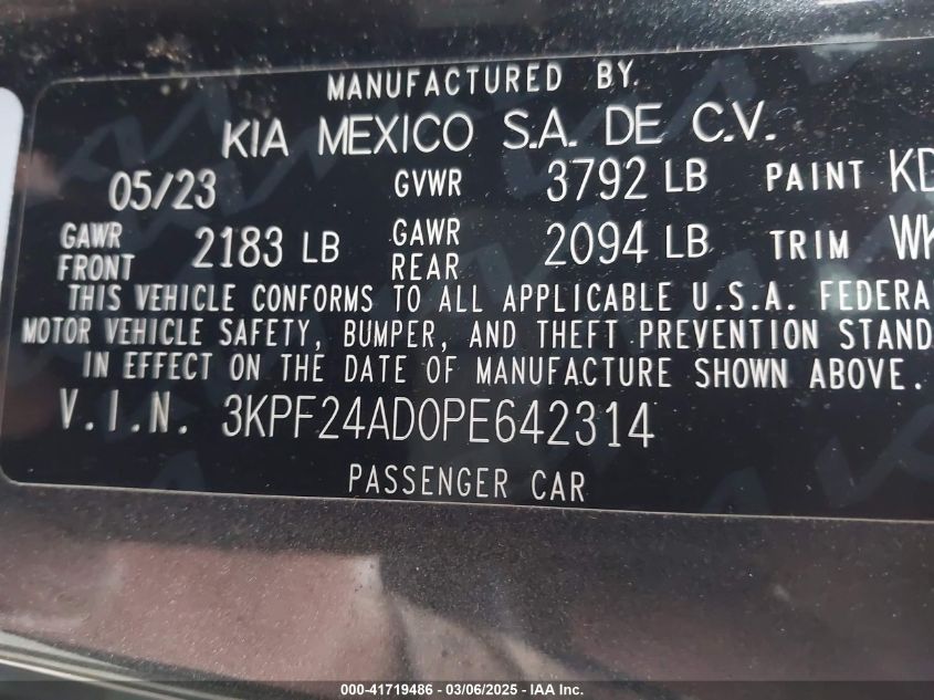 2023 KIA FORTE 2023 Gasoline, 2.0, Front wheel drive, VIN - 3KPF24AD0PE****** from the USA