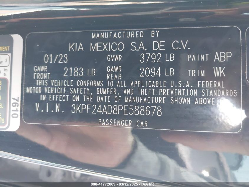 2023 KIA FORTE 2023 Gasoline, 2.0, Front wheel drive, VIN - 3KPF24AD8PE****** from the USA