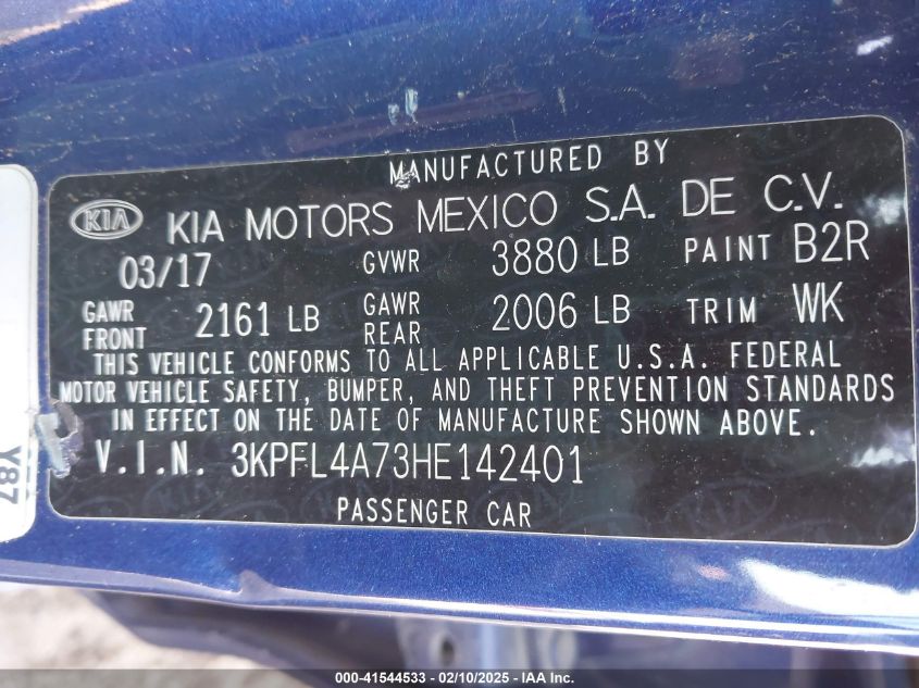 2017 KIA FORTE 2017 Gasoline, 2.0, Front wheel drive, VIN - 3KPFL4A73HE****** from the USA
