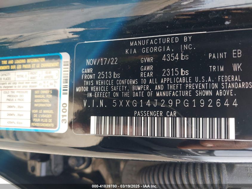 2023 KIA K5 2023 Gasoline, 1.6, Front wheel drive, VIN - 5XXG14J29PG****** from the USA
