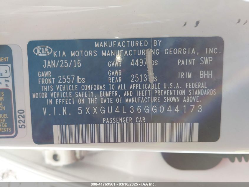 2016 KIA OPTIMA 2016 Gasoline, 2.4, Front wheel drive, VIN - 5XXGU4L36GG****** from the USA